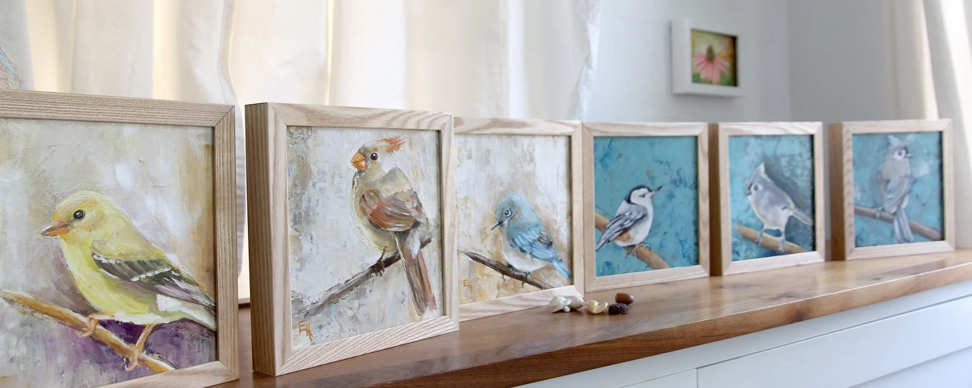 In recent years my painting style has evolved. After going through a series of health challenges and life changes that shifted my perspectives and priorities, I strive to focus on simply creating beautiful and calming art that will have a positive, uplifting, happy, and healing effect in people’s homes. I have most recently been choosing to do this through nature inspired art. Whether it’s wildlife or plants, I like to combine my unique layered style with the subjects I chooses to put a modern spin on nature and still life art.